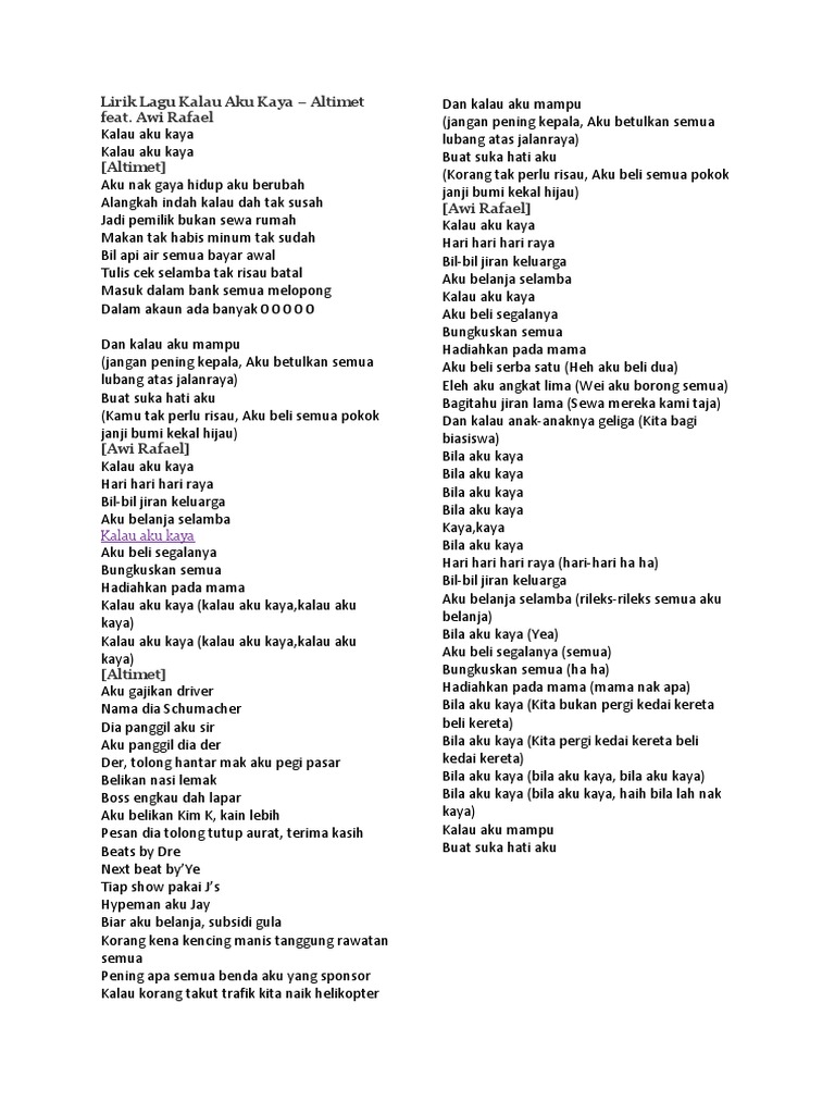 Karena aku bukan datang dari keluarga yang kurang berada aku datang dari keluarga yang cukup itu menjadi sebuah mimpi untuk bisa masuk sekolah kayak gitu ujar Agnez Mo dikutip dari akun TikTok agnezmo_united pada Selasa. Lagu ini dipopulerkan oleh Paniel L. Verse Aku yang terlelap sendiri.